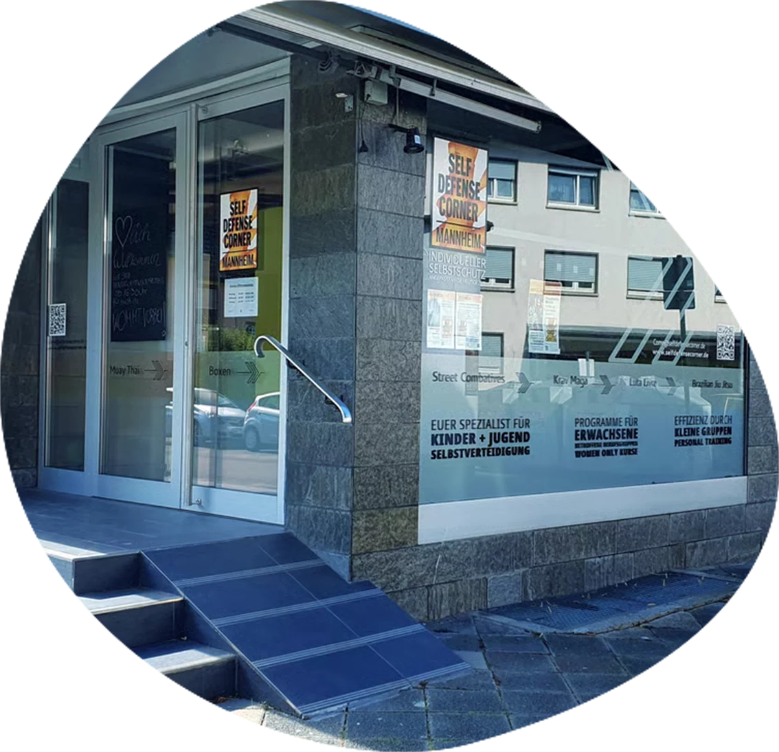 Unser Kursort Self Defence Corner in Mannheim-Seckenheim bietet zwei großzügige Mattenflächen (durch zwei Stufen getrennt), separate Umkleiden sowie einen Sanitärbereich mit WC und Dusche. Der Zugang erfolgt über eine Rampe und ist damit erleichtert, die Räumlichkeiten sind jedoch nicht vollständig barrierefrei (zwei Stufen zum WC).